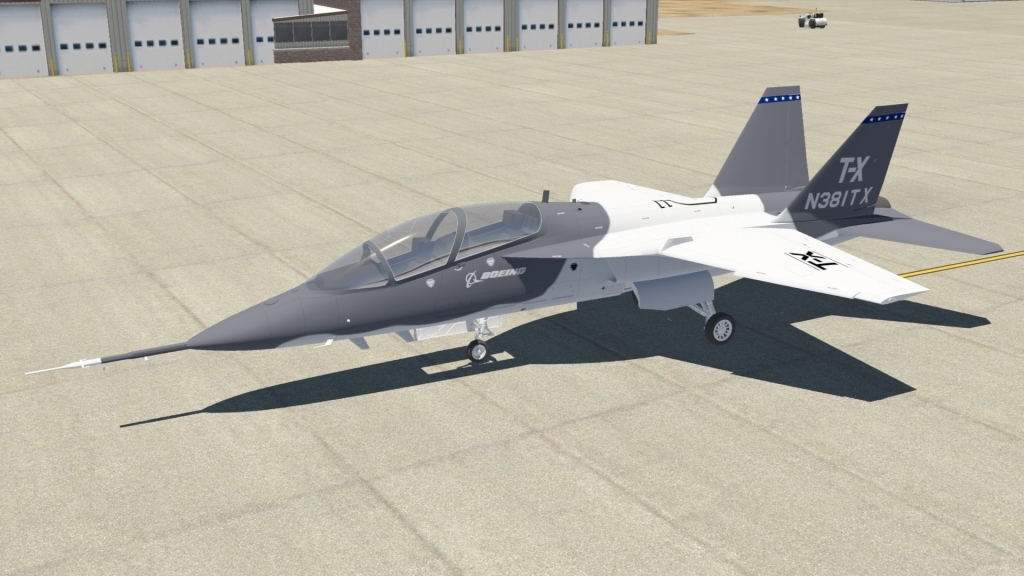 The Boeing T-X trainer airplane has a clean-sheet style, with an airframe containing a solitary engine, twin tails, innovative cockpit stadium seating, and embedded training instrumentation. The aircraft is supplied to consumers as a full advanced pilot training system consisting of advanced ground-based training help.
